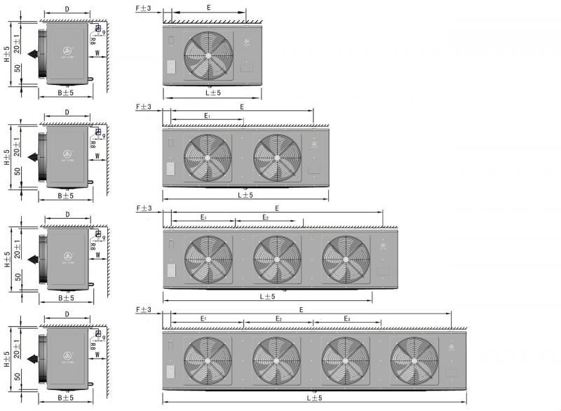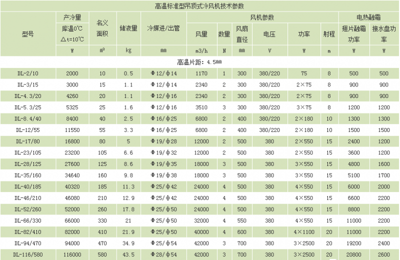 ● 冷风机设计宽度合理,风叶与铝翅片间距均大于1/3风叶直径确保有足够的有效风量;